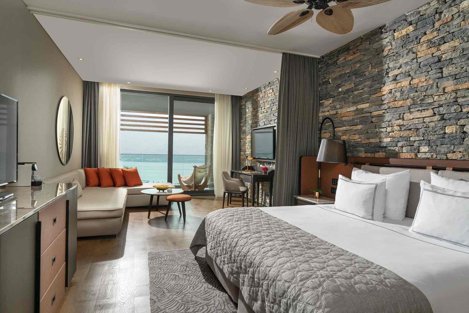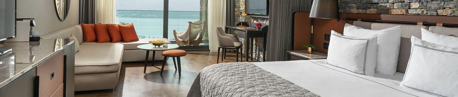 With a partial sea view, Deluxe Rooms provide a living space of 55 m2