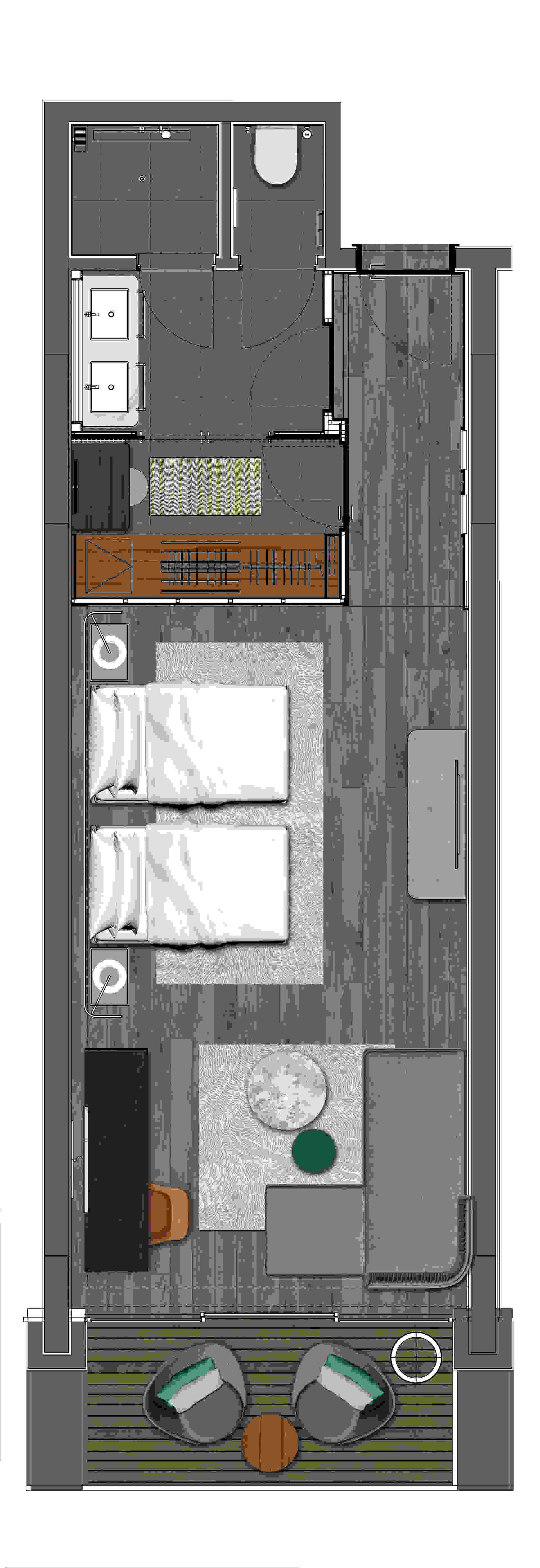 - Balcony with an armchair