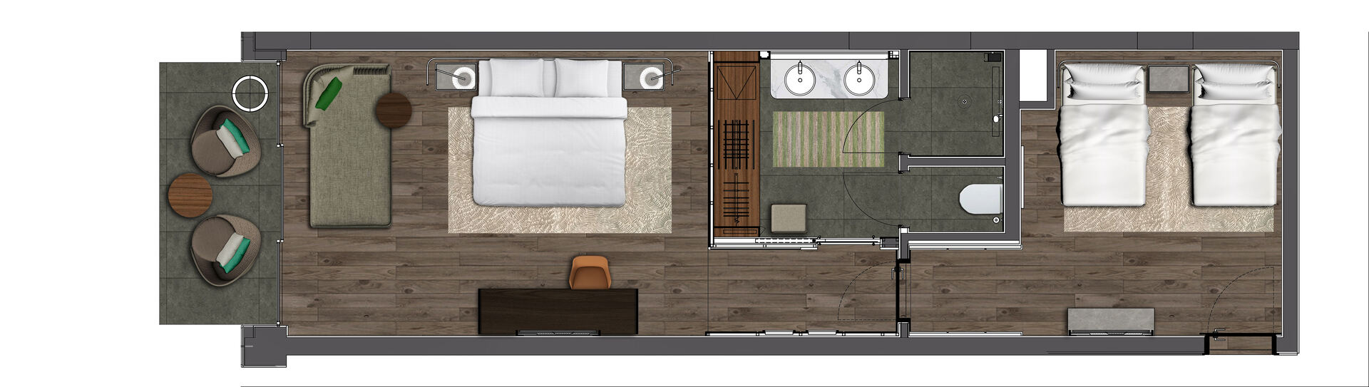 With its 65 m2 of space, full and partial sea view options, Family Room promises you a great family time together with your loved ones.